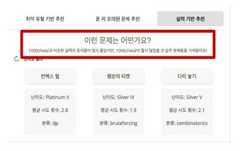 ส่วนขยายนี้มีเป้าหมายเพื่อทำให้กระบวนการเลือกปัญหาอัลกอริธึมมีประสิทธิภาพและใช้งานง่ายขึ้น โดยการใช้ข้อมูลประสิทธิภาพก่อนหน้าของคุณ, 알잘딱깔센추 รับประกันว่าคุณจะได้รับคำแนะนำที่เกี่ยวข้องที่สามารถช่วยให้คุณมุ่งเน้นไปที่พื้นที่ที่ต้องการการปรับปรุง เครื่องมือนี้มีประโยชน์โดยเฉพาะสำหรับผู้ที่ต้องการพัฒนาความสามารถในการแก้ปัญหาในลักษณะที่มีโครงสร้าง